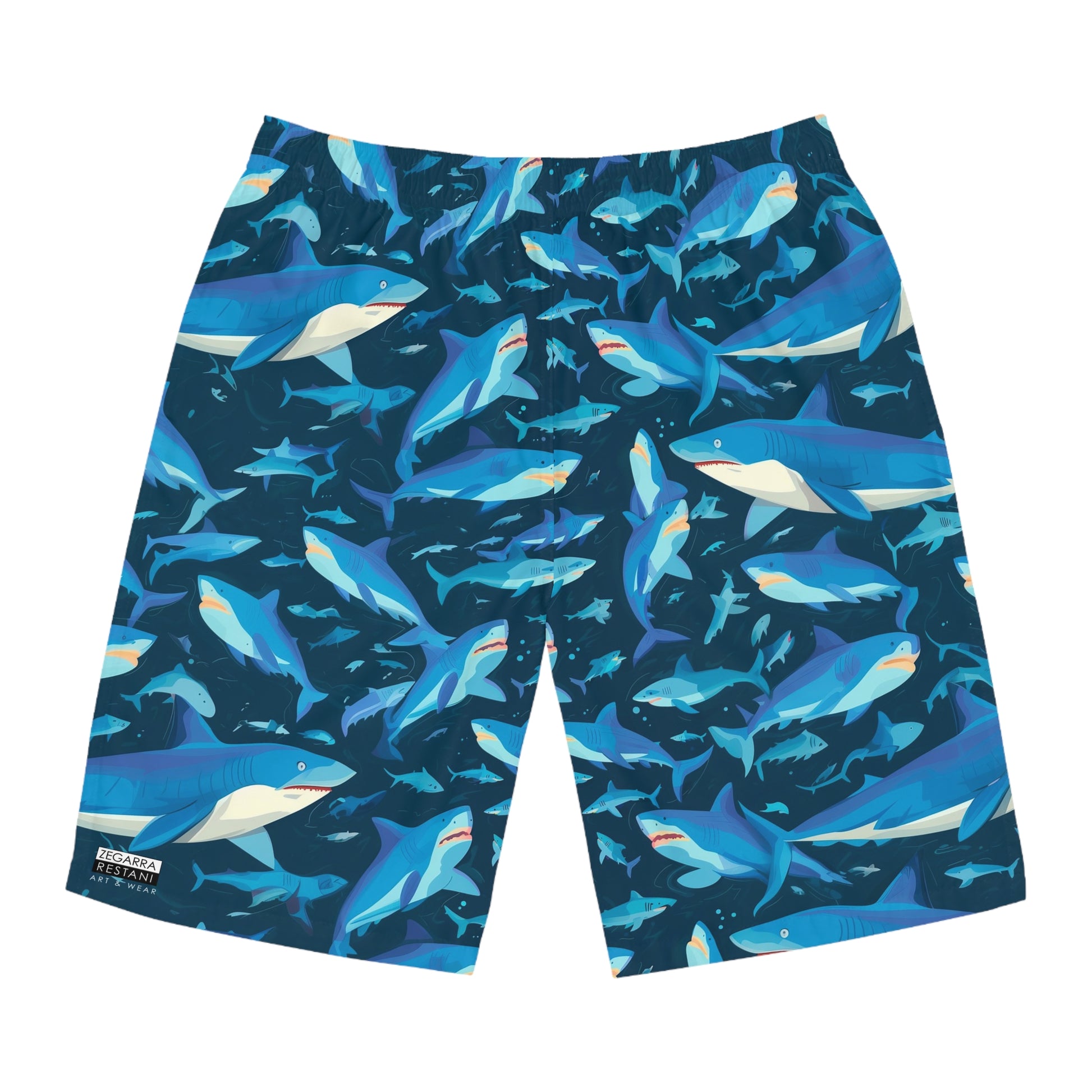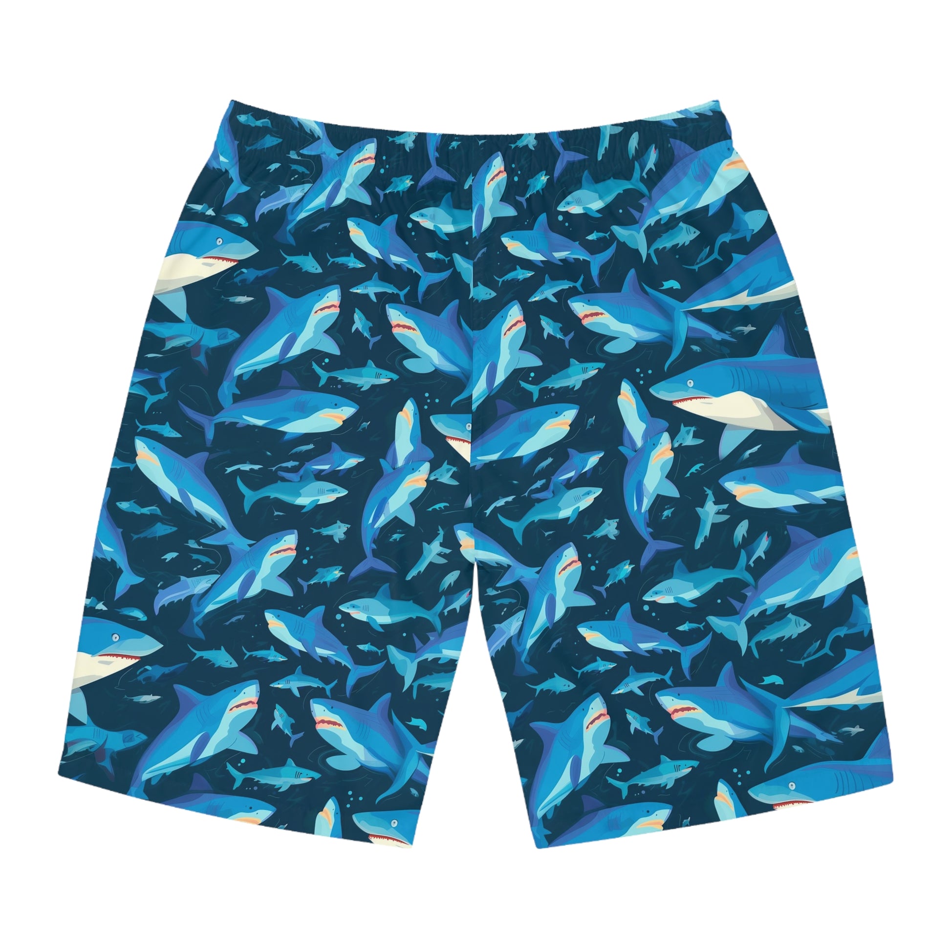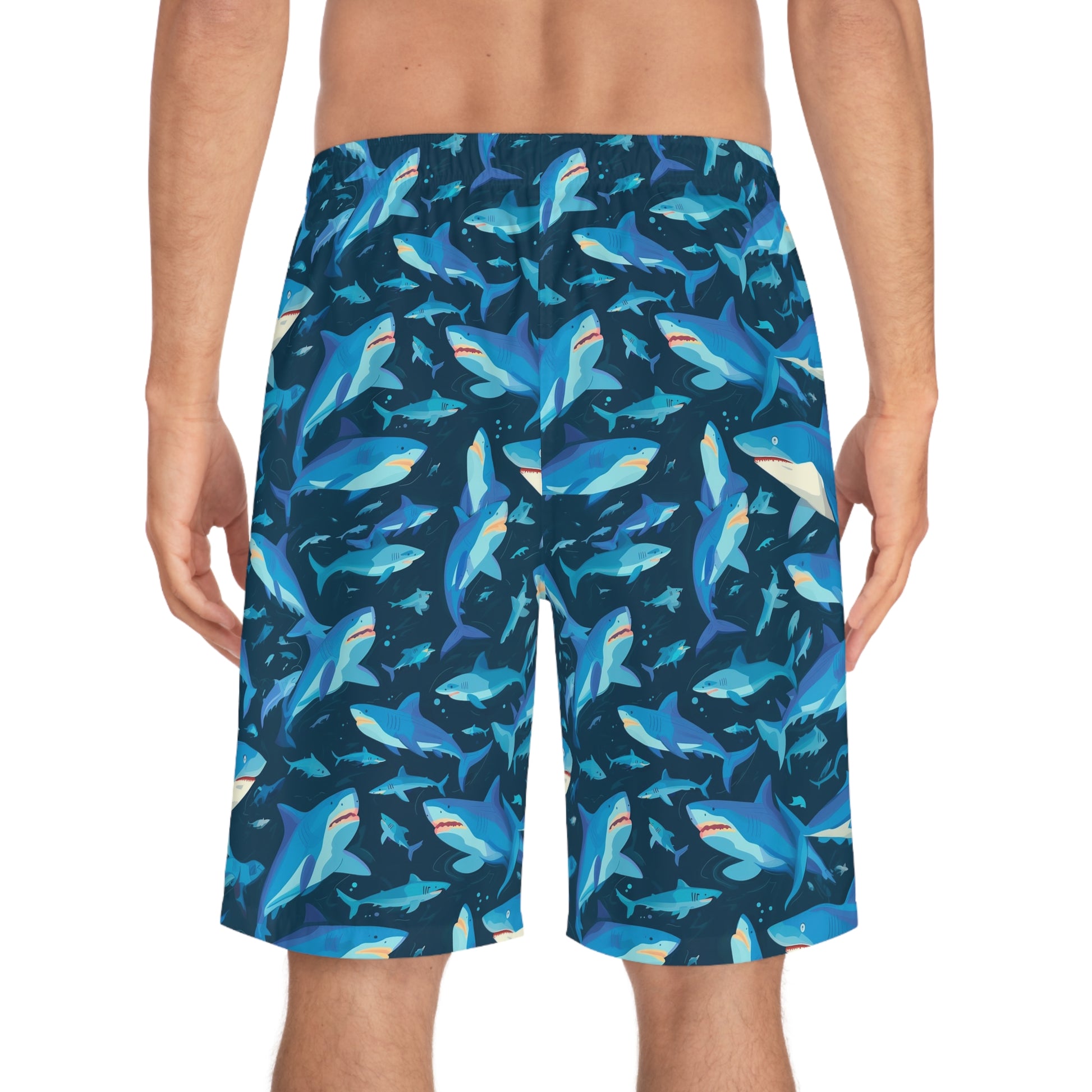 Dive into adventure with the Shark Frenzy Board Shorts for men. Featuring a bold and dynamic shark pattern, these swim trunks combine style and comfort for beach days, poolside lounging, or surfing. Made with lightweight, quick-dry fabric, they provide optimal performance and breathability. Perfect for ocean lovers, these boardshorts are a must-have for your summer wardrobe.