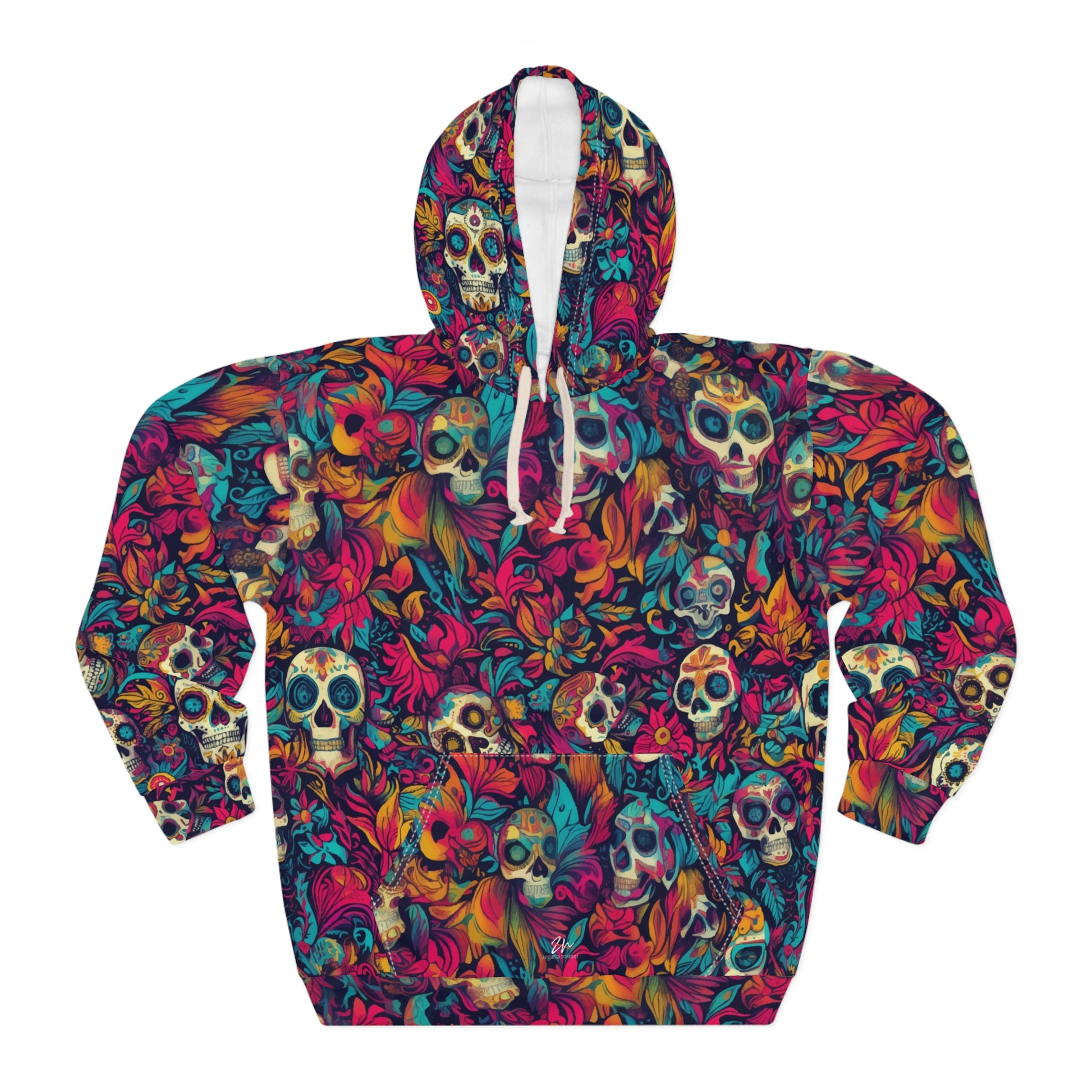 Celebrate vibrant traditions with the Crazy Calacas Unisex Pullover Hoodie. Featuring a bold Día de los Muertos-inspired design with colorful skulls and intricate patterns, this hoodie is both stylish and cozy. Complete with a large front pocket and an adjustable drawstring hood, it’s perfect for casual outings or festive occasions. Add cultural flair to your wardrobe today!