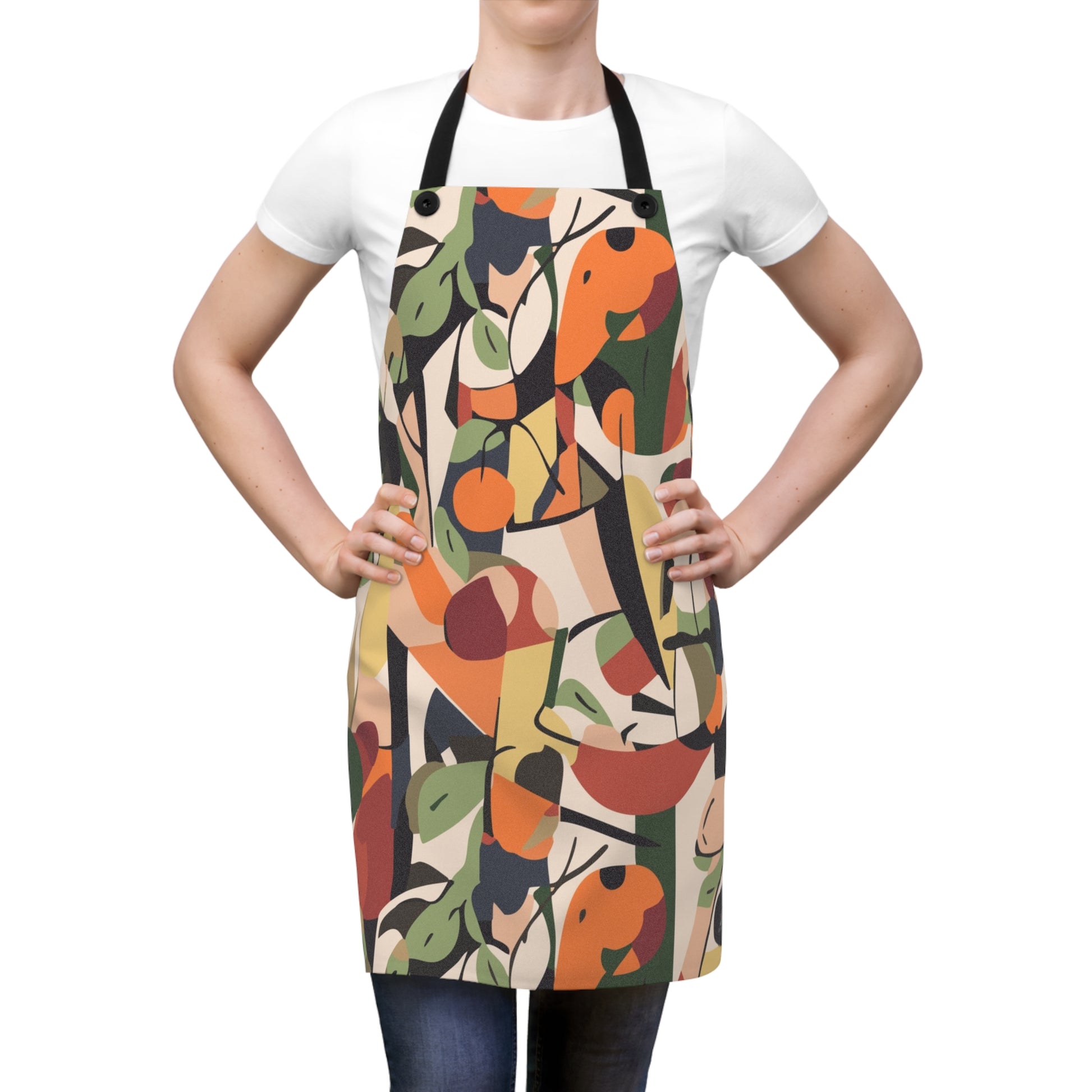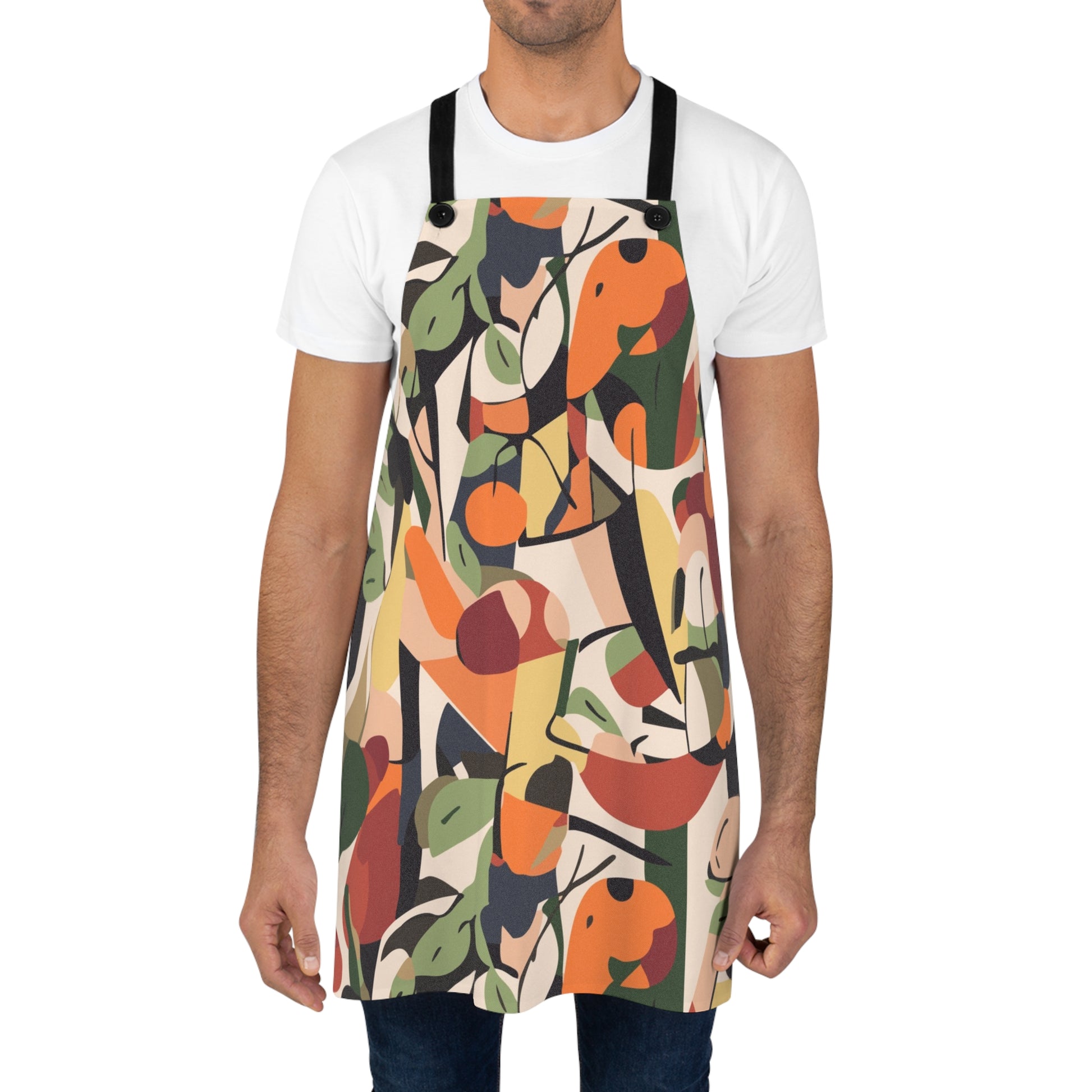 Elevate your cooking experience with the Cubist Garden Apron. Featuring a vibrant design inspired by cubist art, it showcases abstract fruits, leaves, and earthy tones, bringing a touch of creativity to your kitchen. Made from durable, high-quality fabric, it offers excellent coverage and comfort. Perfect for home chefs and art lovers, it combines functionality with artistic charm.