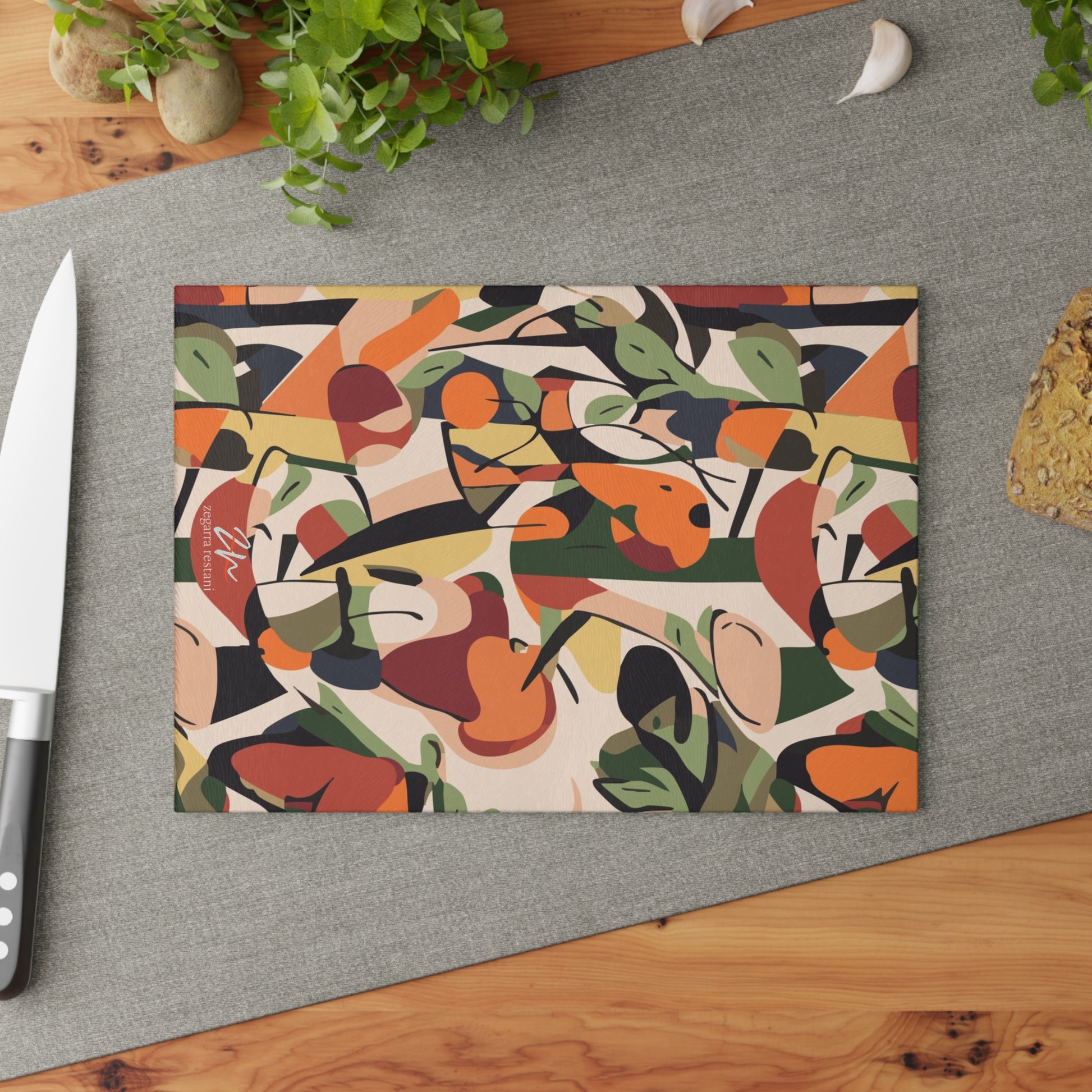 Add a touch of art to your kitchen with the Cubist Garden Cutting Board. Featuring a bold, abstract design inspired by cubist art, it showcases vibrant fruits, leaves, and earthy tones. Made from durable, high-quality materials, this cutting board is perfect for chopping, slicing, or serving. A stylish and functional addition for art-loving home chefs.