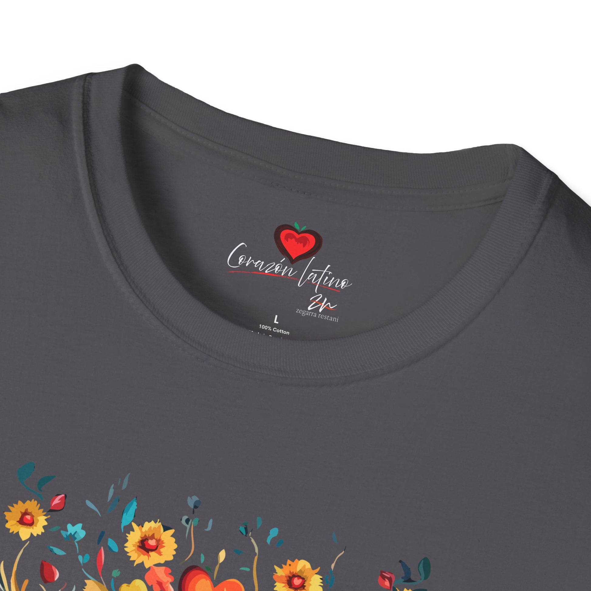 Expresa amor y unidad con la Camiseta Unisex Softstyle Corazón Latino. Con un corazón artístico adornado con intrincados detalles ornamentales, esta camiseta suave y ligera brinda comodidad durante todo el día y un ajuste moderno. Perfecta para un look casual, es una declaración de conexión e inclusión. Eleva tu estilo con este vibrante diseño de alta calidad. ¡Lleva el amor sin límites! ❤️