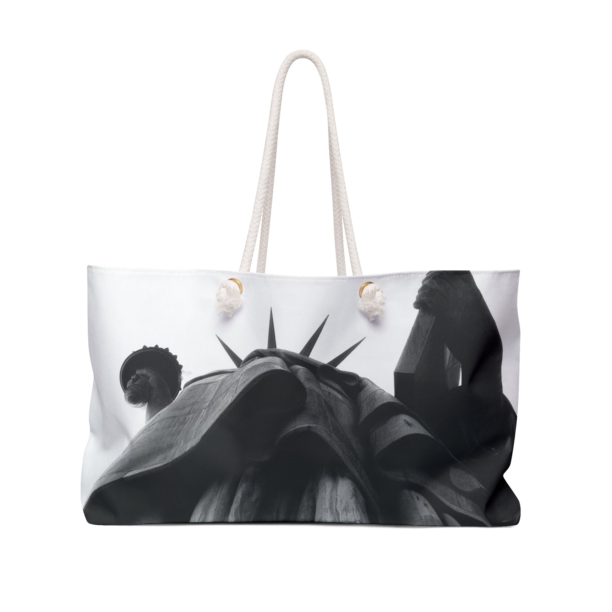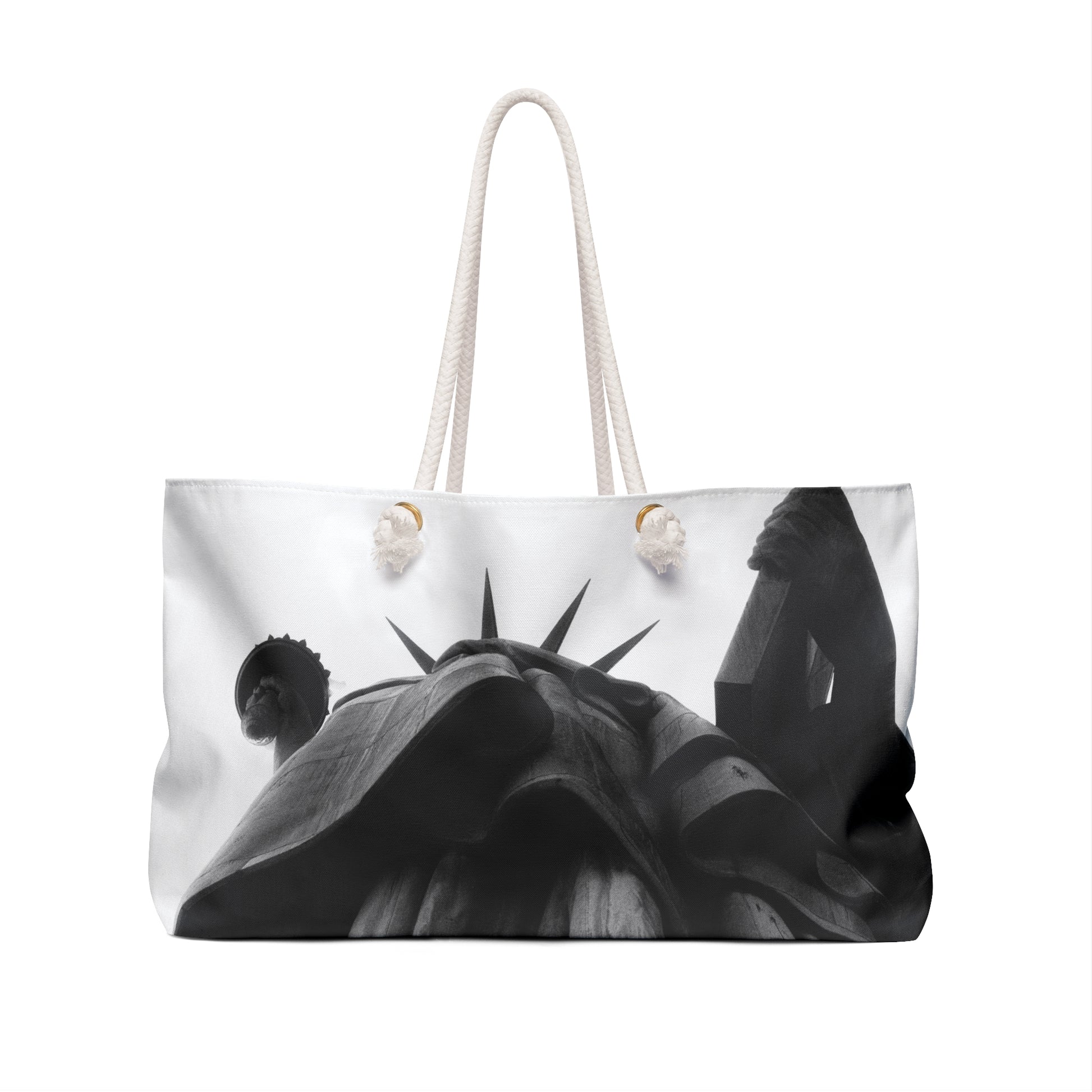 Carry a piece of New York City with the Liberty's Crown Weekender Tote. Perfect for weekend getaways or trips to the beach, this oversized bag combines iconic photography with functionality. Its wide-mouthed design and durable construction hold all your essentials, while thick rope handles provide comfortable carrying. Make a statement with this timeless tribute to the Statue of Liberty.