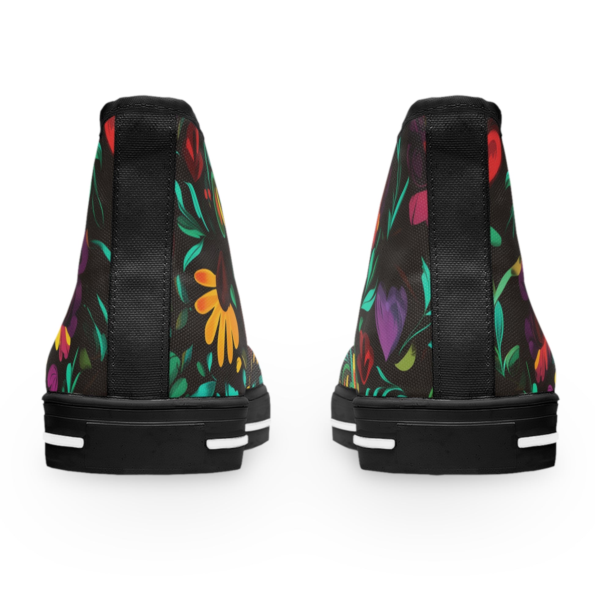 Step into a celebration of color with the Midnight Fiesta Sneakers! These high-top canvas sneakers blend bold floral and heart motifs against a sleek black background, creating a vibrant, artistic statement. Crafted for comfort and durability, they feature breathable fabric, cushioned insoles, and a sturdy rubber sole—perfect for all-day wear. Elevate your style with this unique fusion of art and fashion!