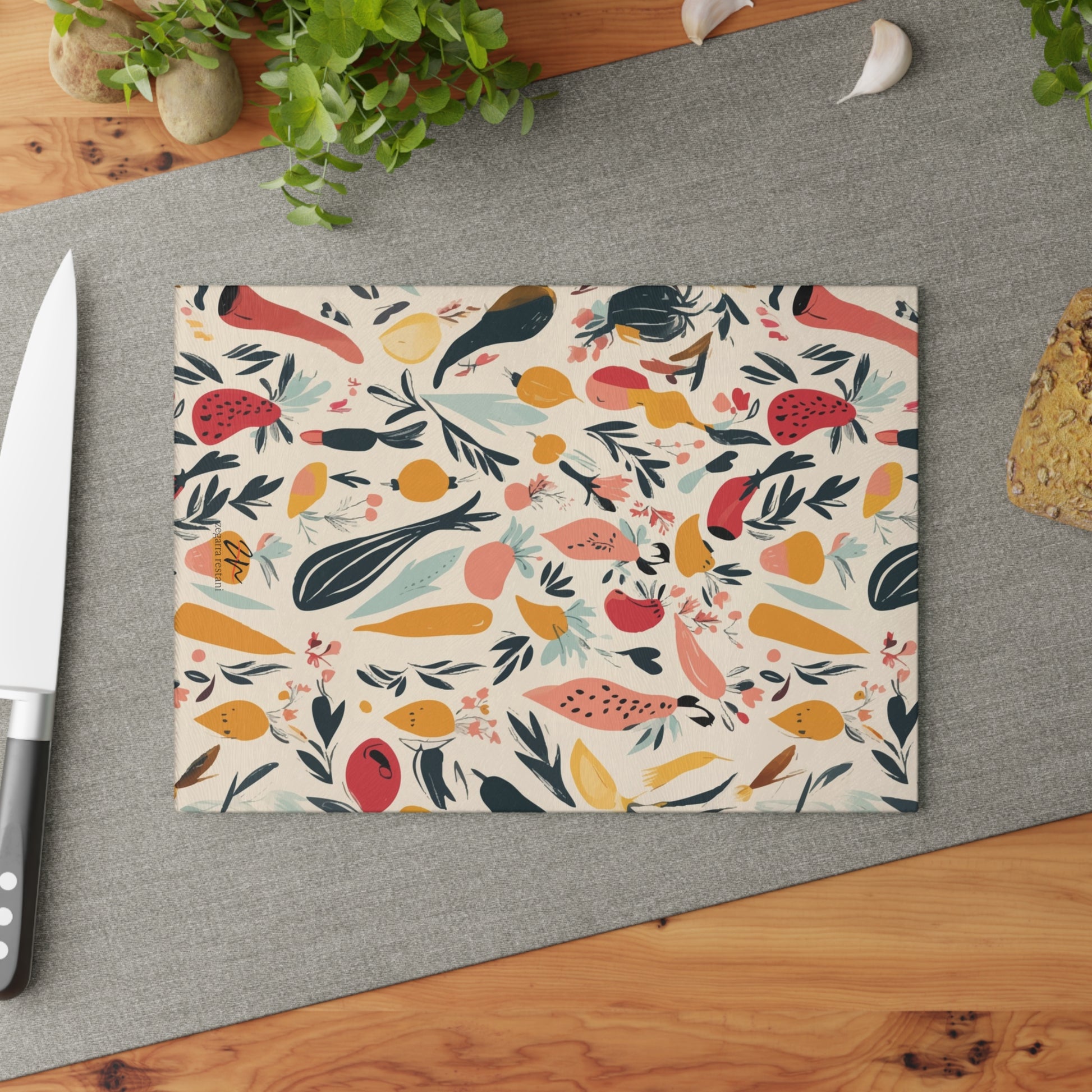 Elevate your cooking with the Modern Organic Glass Cutting Board. Showcasing a stunning botanical design with vibrant fruits and leaves, it combines style and durability. Made from tempered glass, this board is ideal for chopping, slicing, or serving. Its modern aesthetic adds an artistic flair to your kitchen while providing reliable functionality.