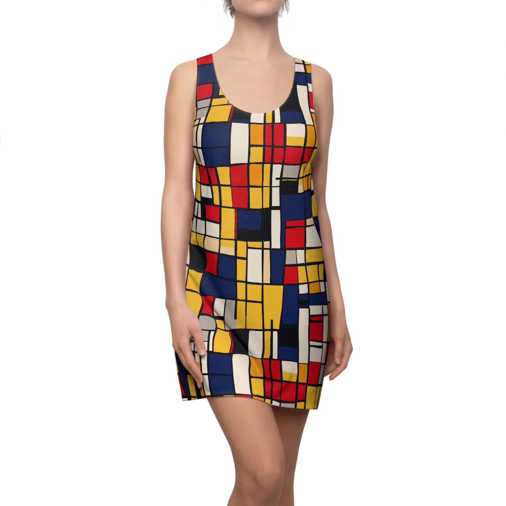 Step into modern art with the Mondrian-Inspired Racerback Dress, featuring a vibrant geometric design inspired by the iconic works of Piet Mondrian. Crafted from soft, breathable fabric, this dress combines comfort with bold style. The racerback cut adds a contemporary flair, making it perfect for casual outings or creative events. Wear art wherever you go with this unique and versatile piece!