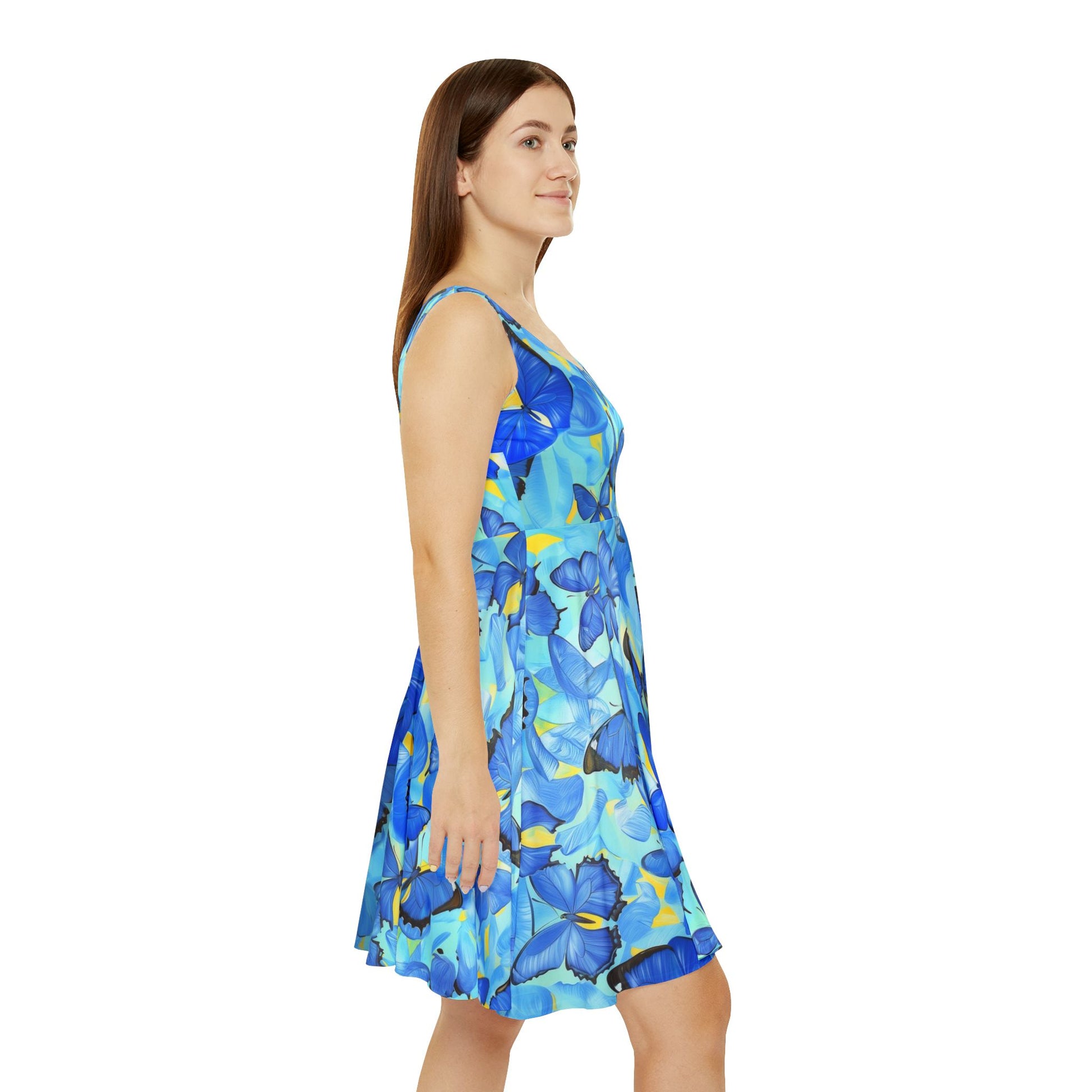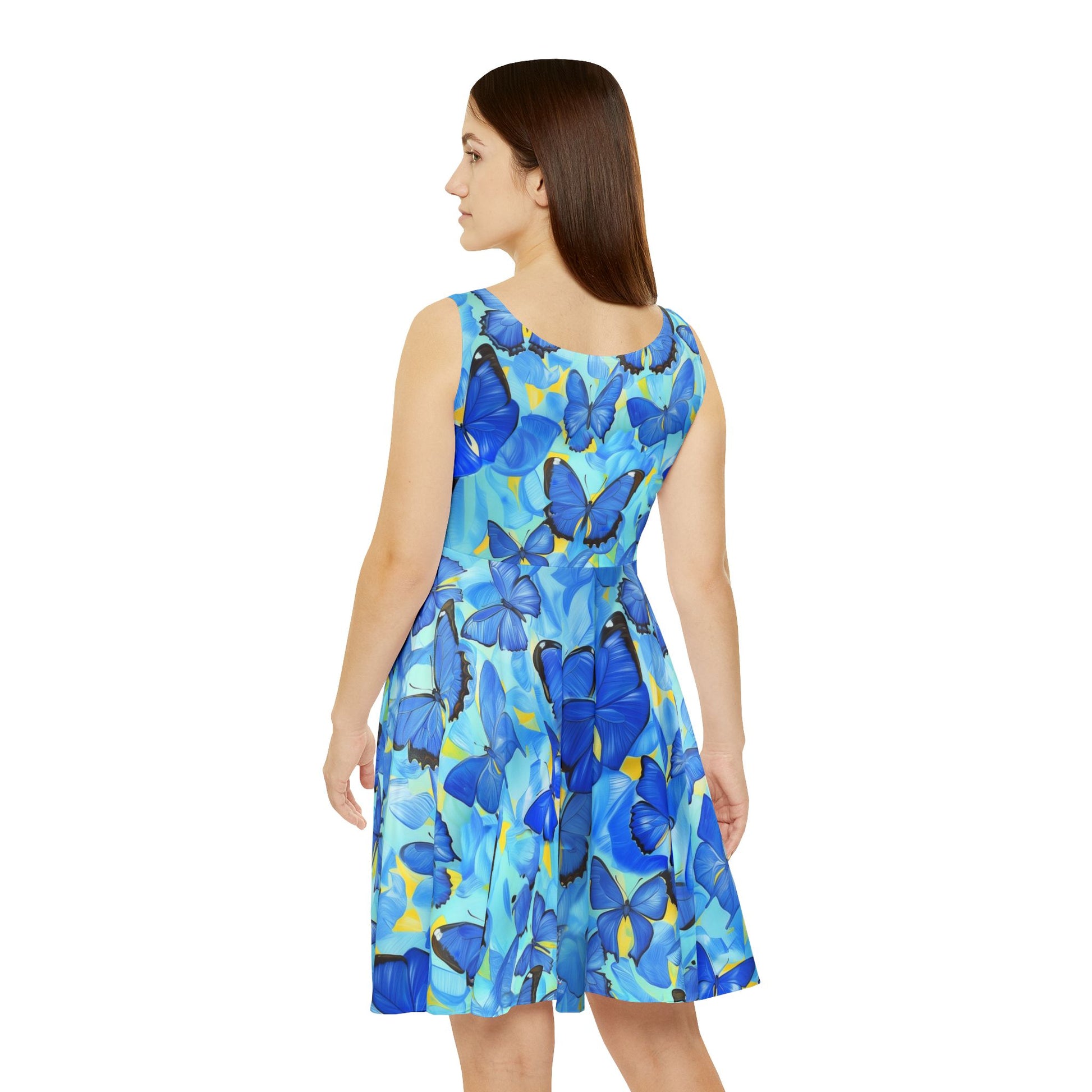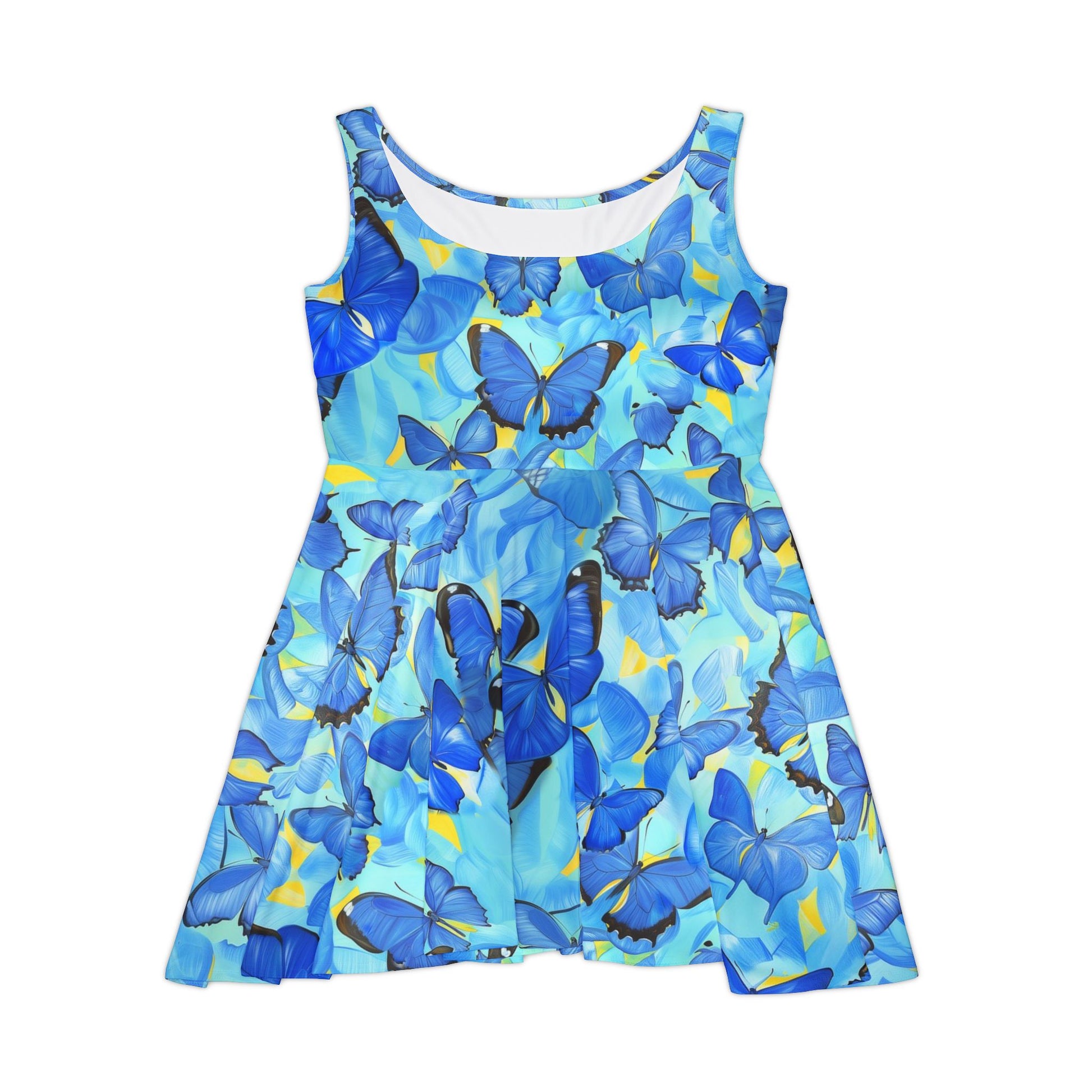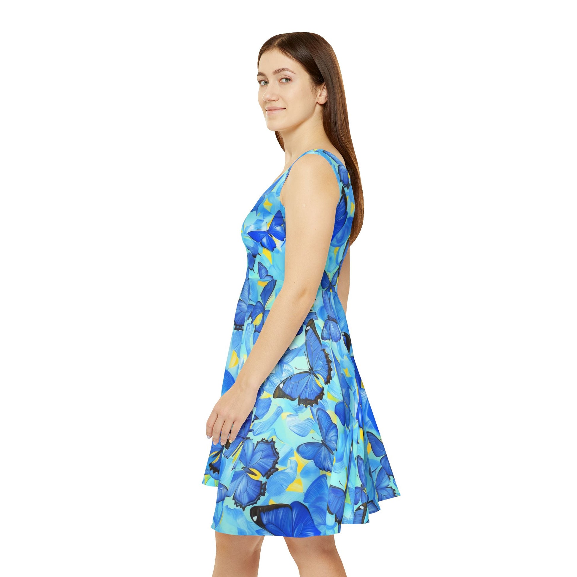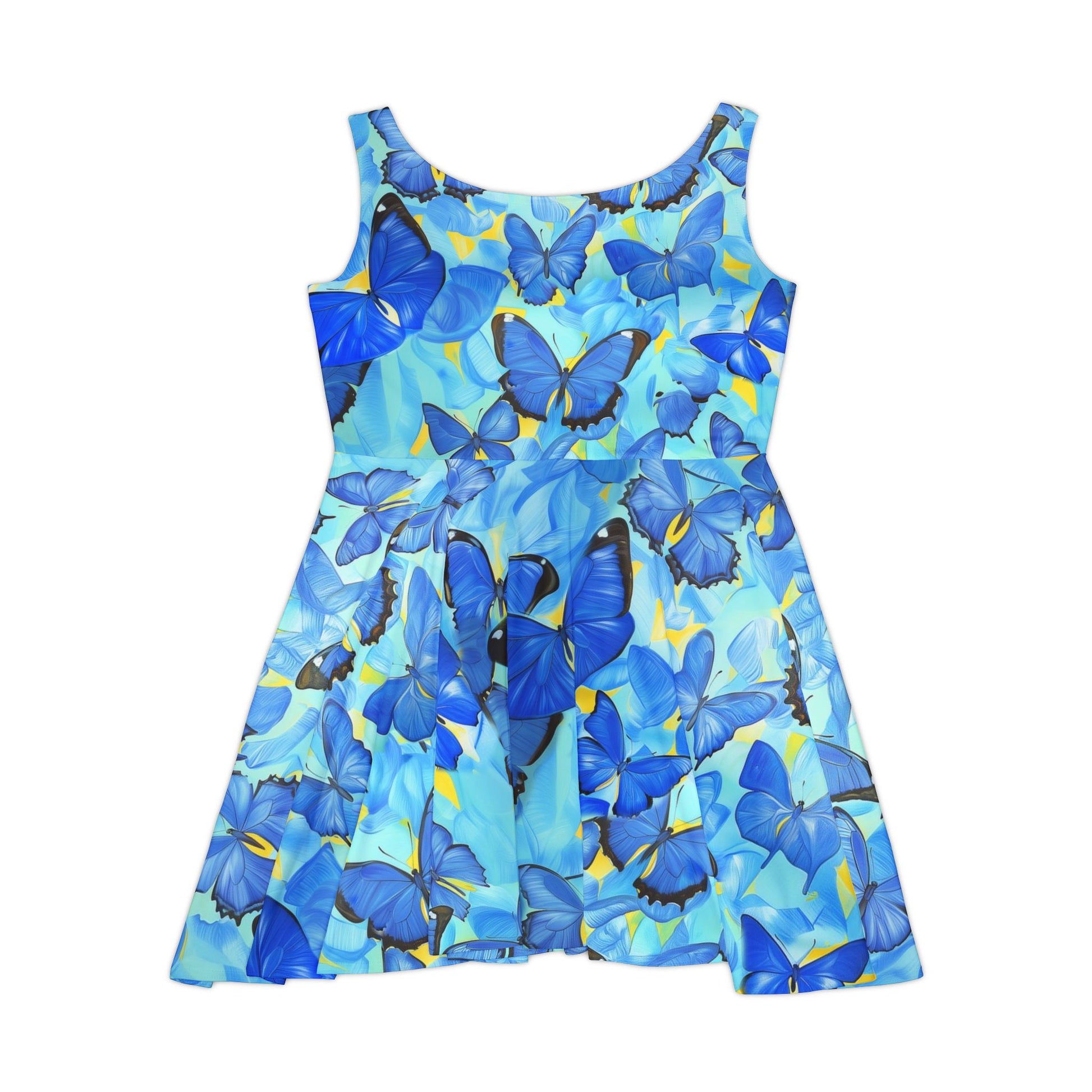 Add a vibrant touch to your wardrobe with the Morpho Women's Skater Dress. Featuring a stunning blue butterfly design inspired by the Morpho species, this dress combines elegance and energy. Its lightweight fabric and flattering silhouette offer all-day comfort and effortless style. Perfect for casual outings, parties, or summer adventures, this skater dress is a statement of bold beauty and grace.