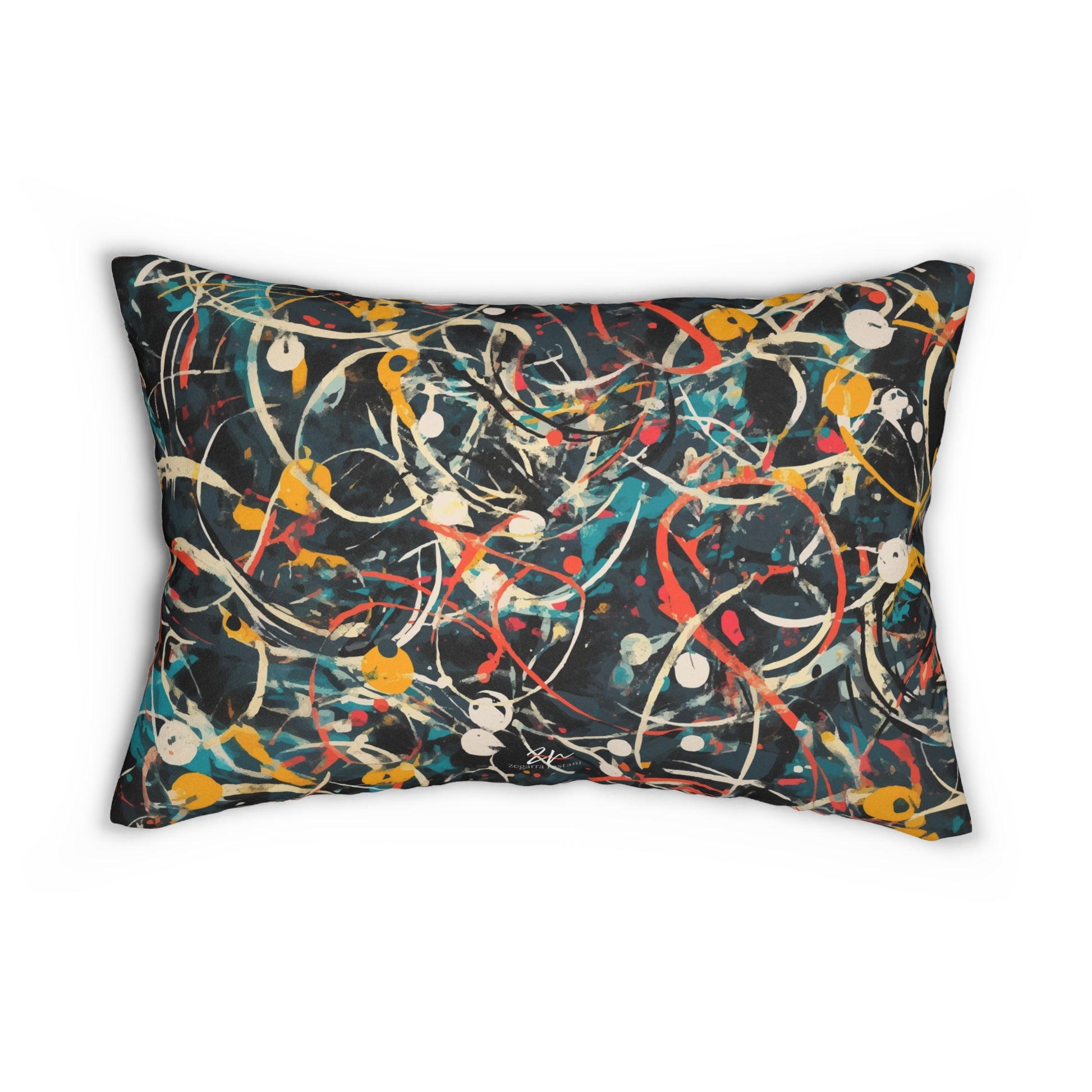 Add an artistic touch to your home with the Pollock-Inspired Lumbar Pillow. Featuring a dynamic abstract design reminiscent of Jackson Pollock's iconic style, this pillow combines vibrant colors and bold strokes. Crafted with high-quality materials and filled for maximum comfort and comes with a stuffing pillow included. It’s perfect for living rooms, bedrooms, or offices. Elevate your space with this striking piece of modern art!