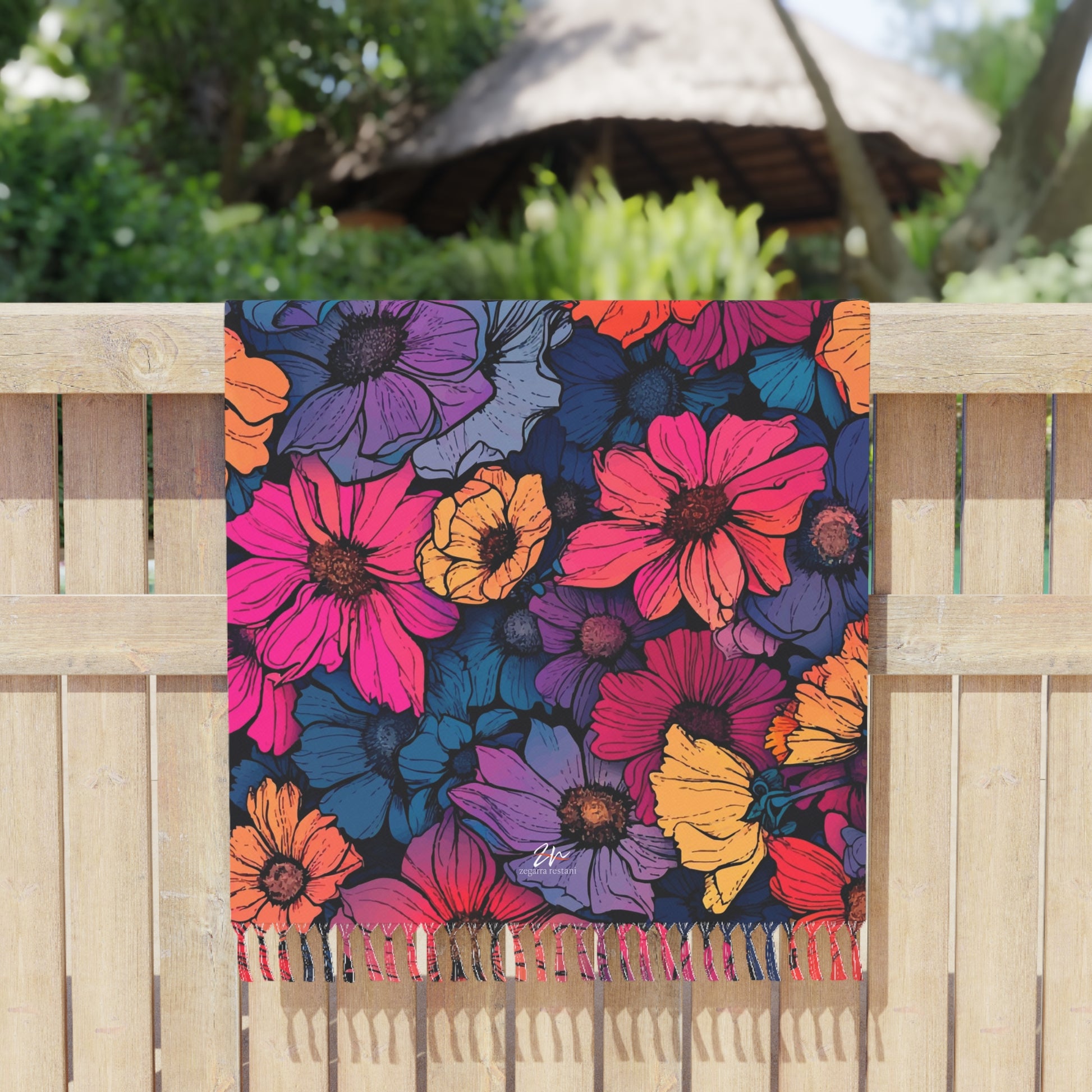 Add a burst of floral vibrancy to your style with the Vivid Blossoms Boho Wrap. This lightweight and versatile wrap showcases a stunning array of colorful blooms, perfect for beach days, picnics, or as a chic shawl. Soft to the touch and beautifully designed, it’s an ideal blend of functionality and artistic charm for any occasion.
